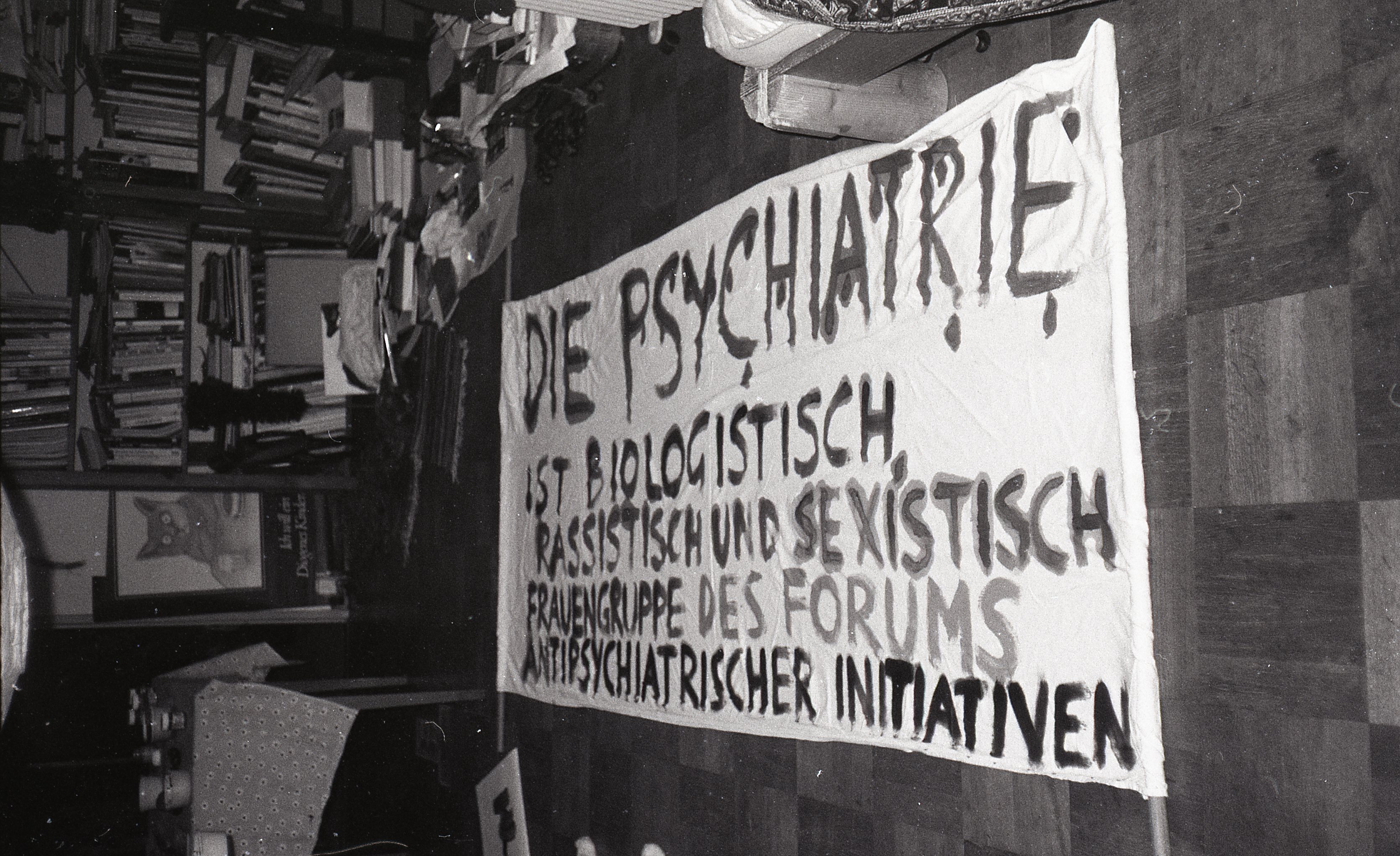 Brigitte Aloise Roth. Banner Demo Antipsychiatrie. 1994